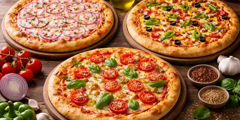 Onion with Capsicum Pizza [7 inches]+Capsicum with Corn Pizza [7 inches]+Paneer with Jalapeno Pizza [7 inches]+Red peprika with Capsicum Pizza [7 inches]